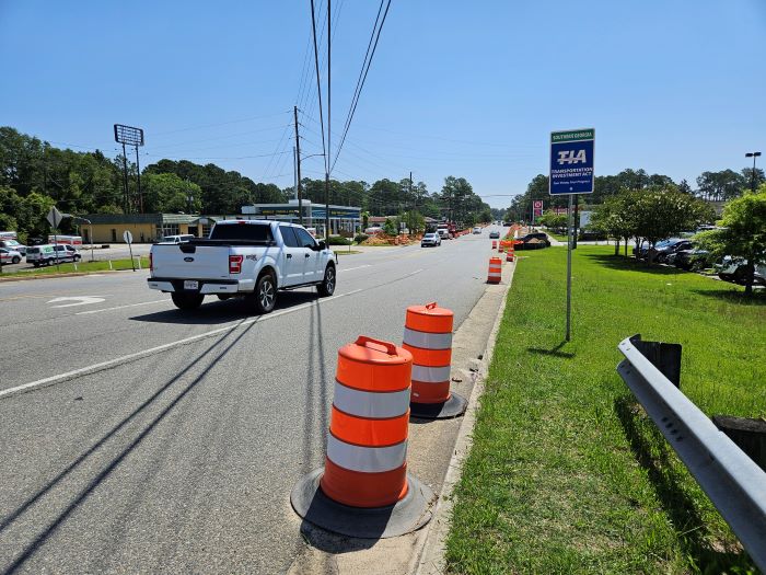Whenever we start a new road project, many people are surprised that our contractors have many activities that don't seem to involve the actual roadway. For the 8th Street widening project in Tifton, work has started on the roadsides with teams building new concrete curb and gutter, moving utility lines and clearing the spaces that will soon be part of the new lanes. If you enter 8th Street from the Interstate 75 interchange, you'll see the TIA project sign right away with all the orange and white barrels lined up along the work zone. You'll also see some new curb and gutter that shows where the new roadside boundaries will be.