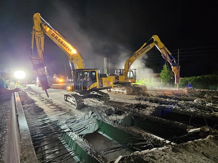 With various coordinated teams participating, the overnight driving public remaining in the vicinity and tons of rubble to be created and then removed, keeping everyone and everything in the area safe and secure was the ultimate goal. Yes, working quickly and making sure that resources were being used carefully were also important, but time and costs can be managed if necessary. Peoples' lives and livelihoods must always be protected and preserved, as unaffected as possible by the construction.