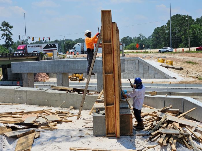 In the meanwhile, other teams have finished a few retaining walls. You may also see workers doing specialized tasks from time to time, like this traffic signal engineering duo. Be sure to drive alert and carefully throughout the work zone - you never know who could be active close by.
