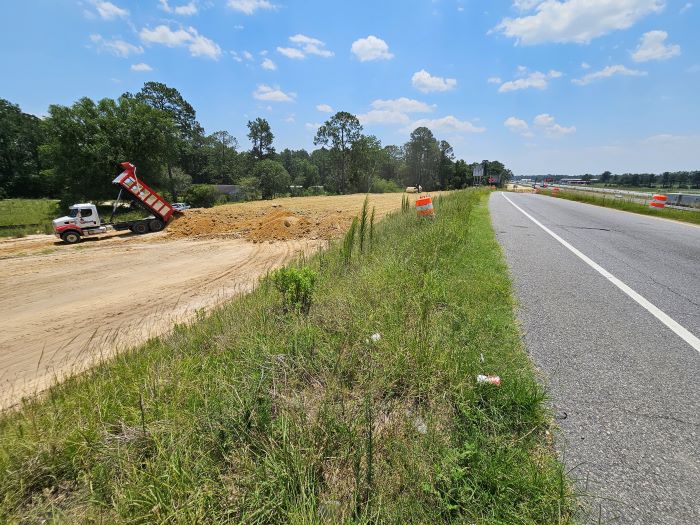 The grading crews are still at work along many of the interchange's on-ramps and off-ramps, building up and leveling the land that will contain the new widened lanes. Below, you can see that the area around the off-ramp from Interstate 75 to SR 31 WB is all flat and level, while teams are continuing the process on the on-ramp from Interstate 75 to SR 31 EB. Imagine how efficient this interchange will be in future, with the extra lanes on the on-ramps and off-ramps leading to the new roundabouts at the intersections.
