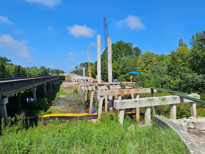 Summer is a great time for road and bridge construction in Georgia, as the weather is mostly sunny and hot apart from the occasional storm. Crews working on projects in rural Georgia tend to have additional challenges in summer: an abundance of annoying gnats and surprise snakes, especially in or near rivers or lakes. Recent storms in Southern Georgia have made it so that at the US 82 bridge replacement site, teams are dealing with a LOT of mud and a LOT of gnats, and they're taking a LOT of care to make sure no one steps on a hidden water moccasin.